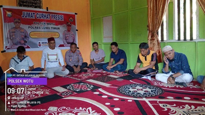 Polres Luwu Timur – Polres Luwu Timur Polsek Wotu melaksanakan kegiatan Jumat Curhat secara serentak dengan masyarakat Wotu kegiatan tersebut dipimpin oleh Akp Muhajir Jumat (5/7/2024)