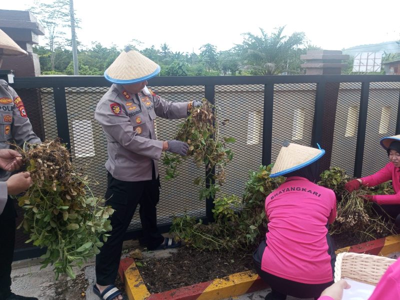 Malili, 24 April 2024 — Dalam rangka mendukung program ketahanan pangan nasional, Kapolres Luwu Timur AKBP Zulkarnain, S.H., S.I.K., M.H., bersama Ketua Bhayangkari Cabang Luwu Timur Ny. Ayu Zulkarnain, memimpin kegiatan panen kacang tanah di lokasi Pekarangan Pangan Lestari (P2L) Polsek Malili, Desa Puncak Indah, Kecamatan Malili, Kabupaten Luwu Timur, Kamis sore (24/4).