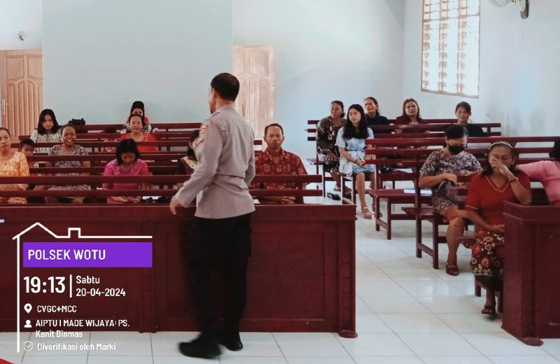 Polres Luwu Timur – Sebagai upaya untuk mendengar langsung keluhan dari masyarakat, Polsek Nuha yang di Pimpin langsung oleh Aiptu I Made Wijaya kegiatan Minggu Kasih yang bertempat di Gereja Toraja Dusun 3 Desa Kanawatu Kabupaten Luwu Timur. Minggu (21/4/2024)