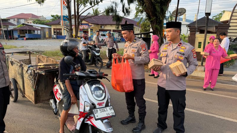 Luwu Timur – Dalam rangka meningkatkan kepedulian kepada masyarakat di bulan suci Ramadan 1447 H / 2026 M, jajaran Polsek Malili bersama Polsubsektor Angkona yang berada di bawah naungan Polres Luwu Timur melaksanakan kegiatan pembagian takjil kepada para pengguna jalan. (10/3/2026)