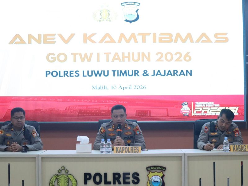 Polres Luwu Timur menggelar kegiatan anev Kamtibmas TW I Tahun 2026 yang dilaksanakan di Aula Polres Luwu Timur pada hari Jumat (10/4/2026).
