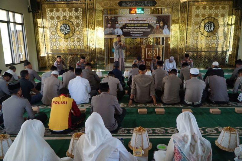 Luwu Timur – Polres Luwu Timur menggelar peringatan Isra Mi’raj Nabi Muhammad SAW 27 Rajab 1447 Hijriah yang berlangsung khidmat di Masjid Al Ukhuwah, Rumah Ibadah Bhineka Tunggal Ika Polres Luwu Timur, Jumat (16/1/2026).