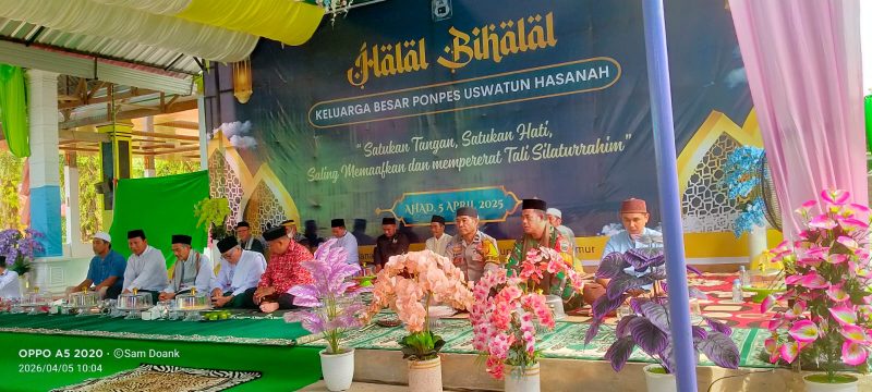Acara Halal Bi Halal ini diisi dengan berbagai rangkaian kegiatan, mulai dari pembukaan, pembacaan ayat suci Al-Qur’an, sambutan dari para tokoh, hingga pengajian umum yang disampaikan oleh pimpinan Pondok Pesantren Uswatun Hasanah. Kegiatan berlangsung khidmat dan penuh kekeluargaan, dihadiri sekitar 500 orang dari berbagai kalangan, termasuk tokoh agama, tokoh masyarakat, serta para santri dan wali santri.